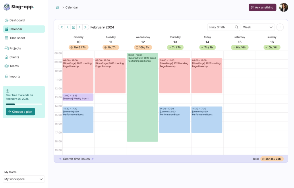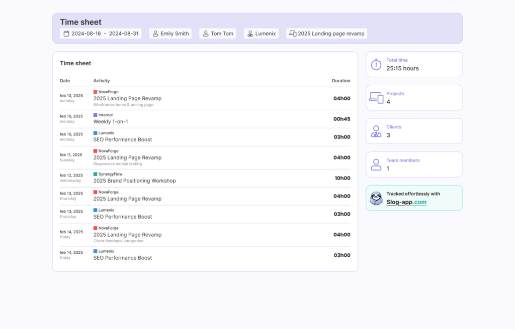 Connect Slog to Slack or Microsoft Teams and track time where you work every day